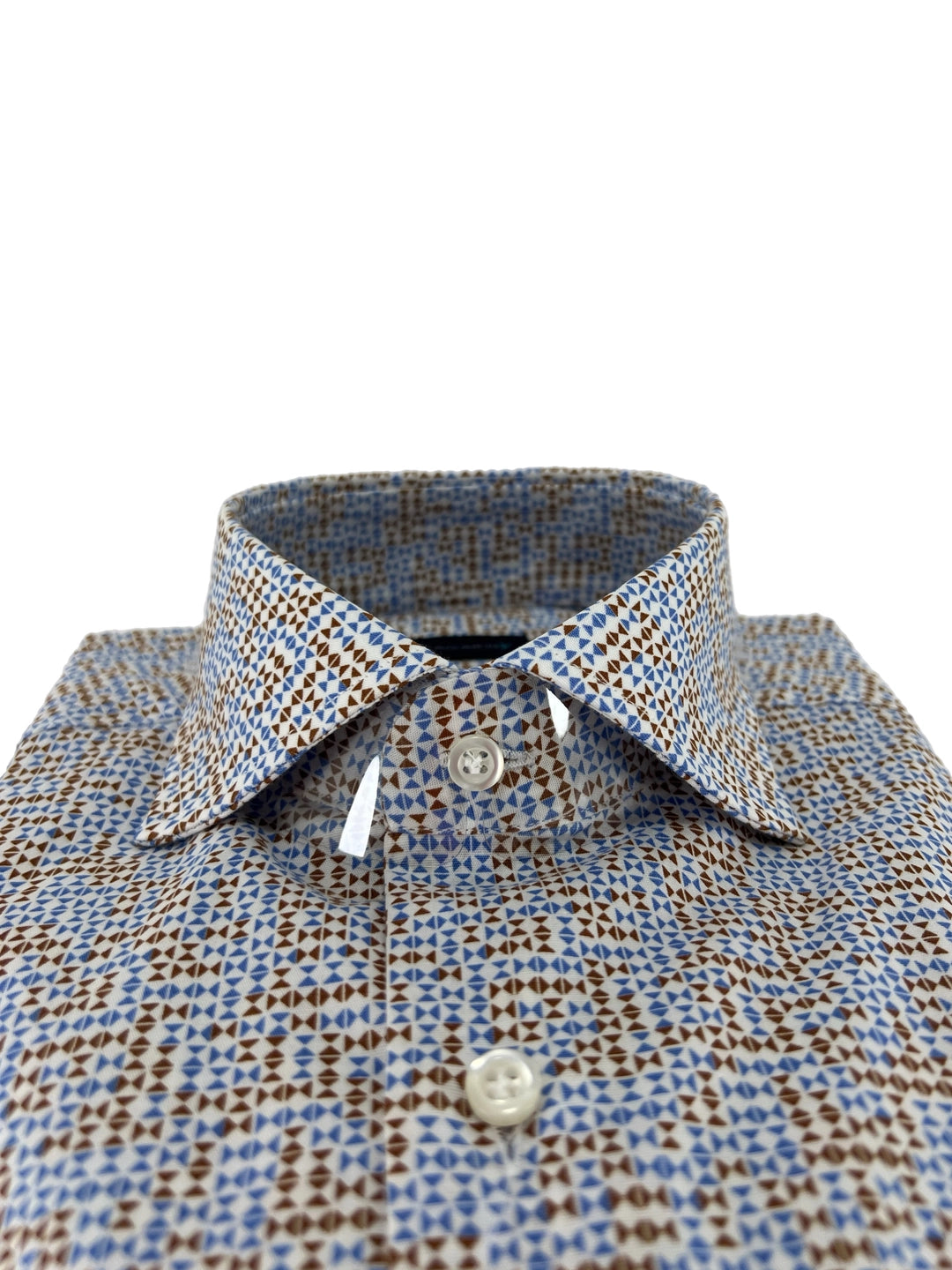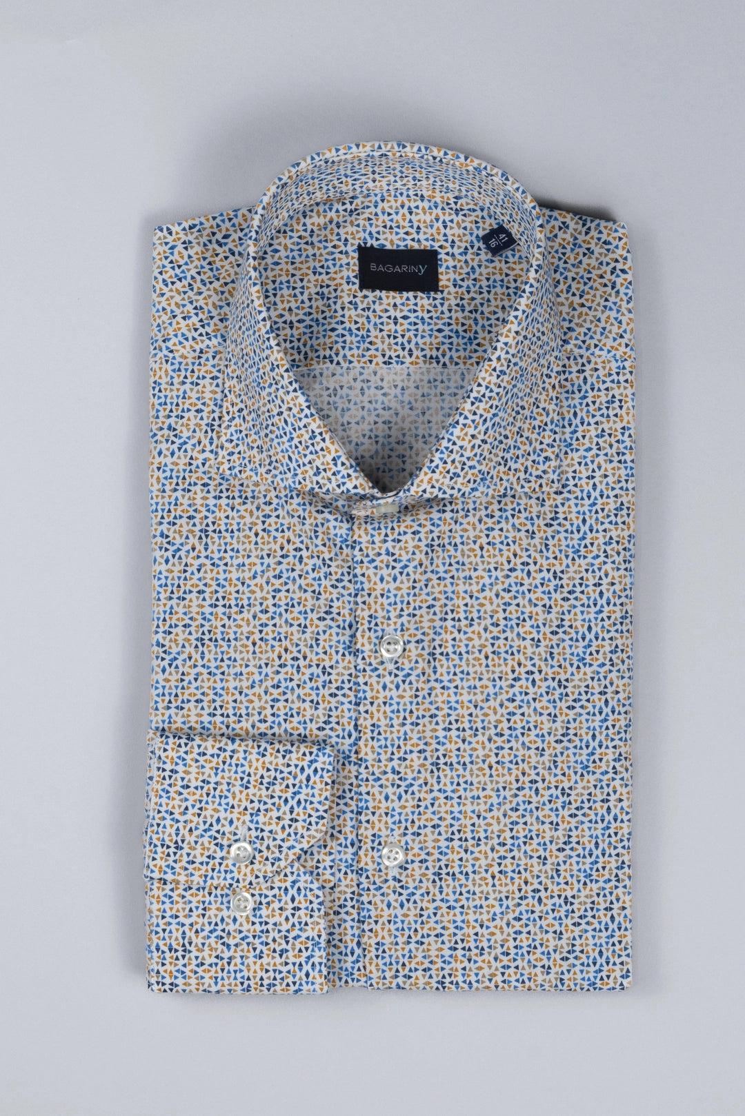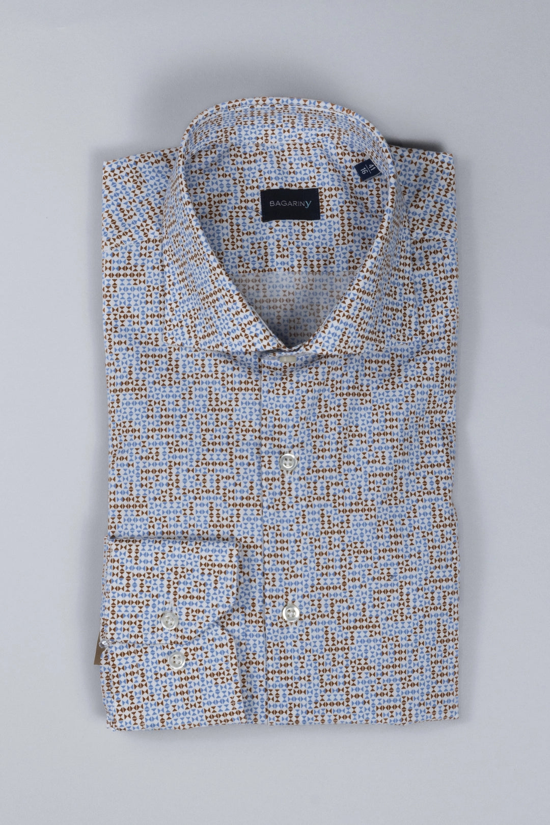 Camicia uomo Bagariny sartoriale in cotone popeline stretch con microfantasia - slim fit