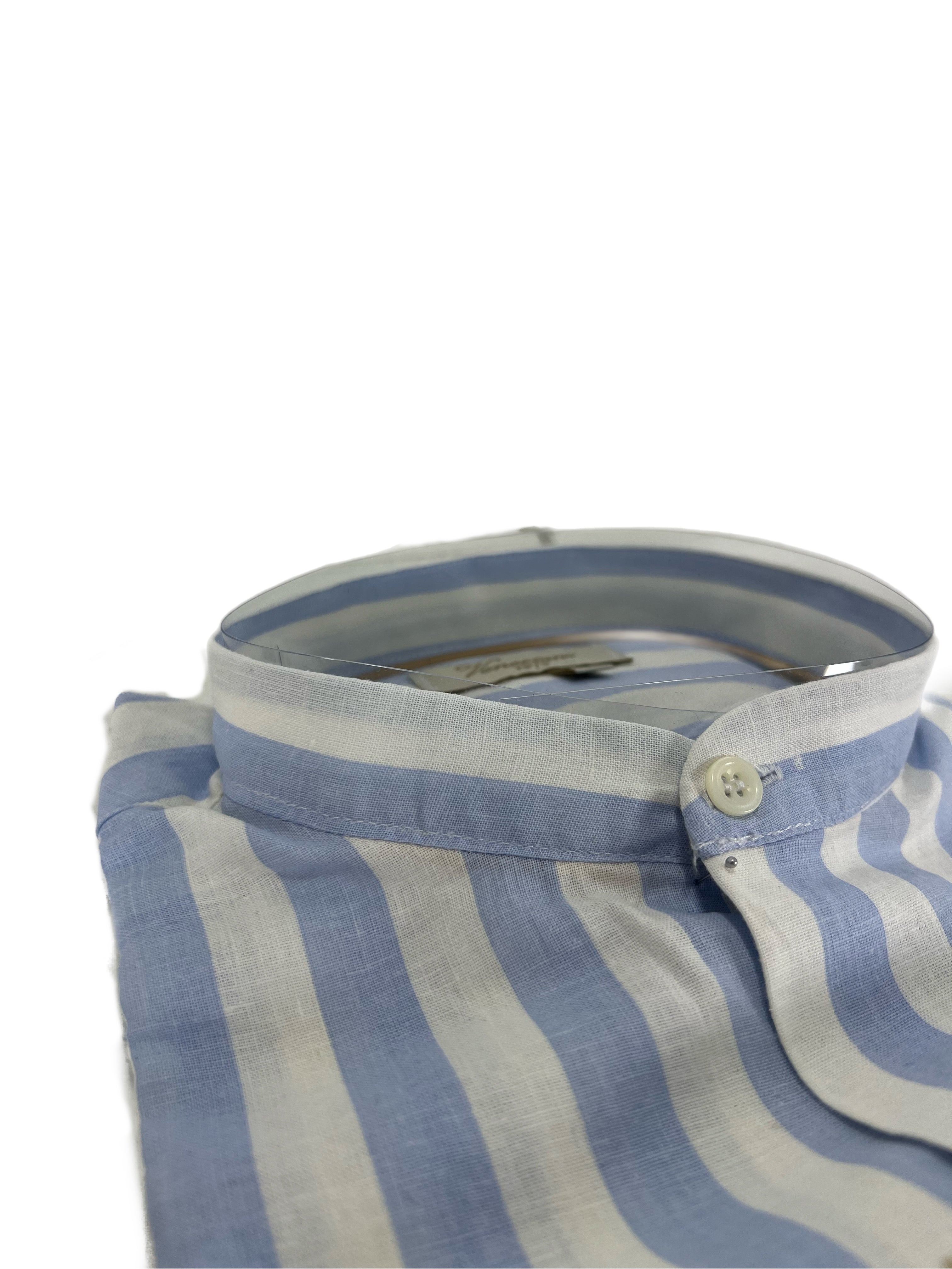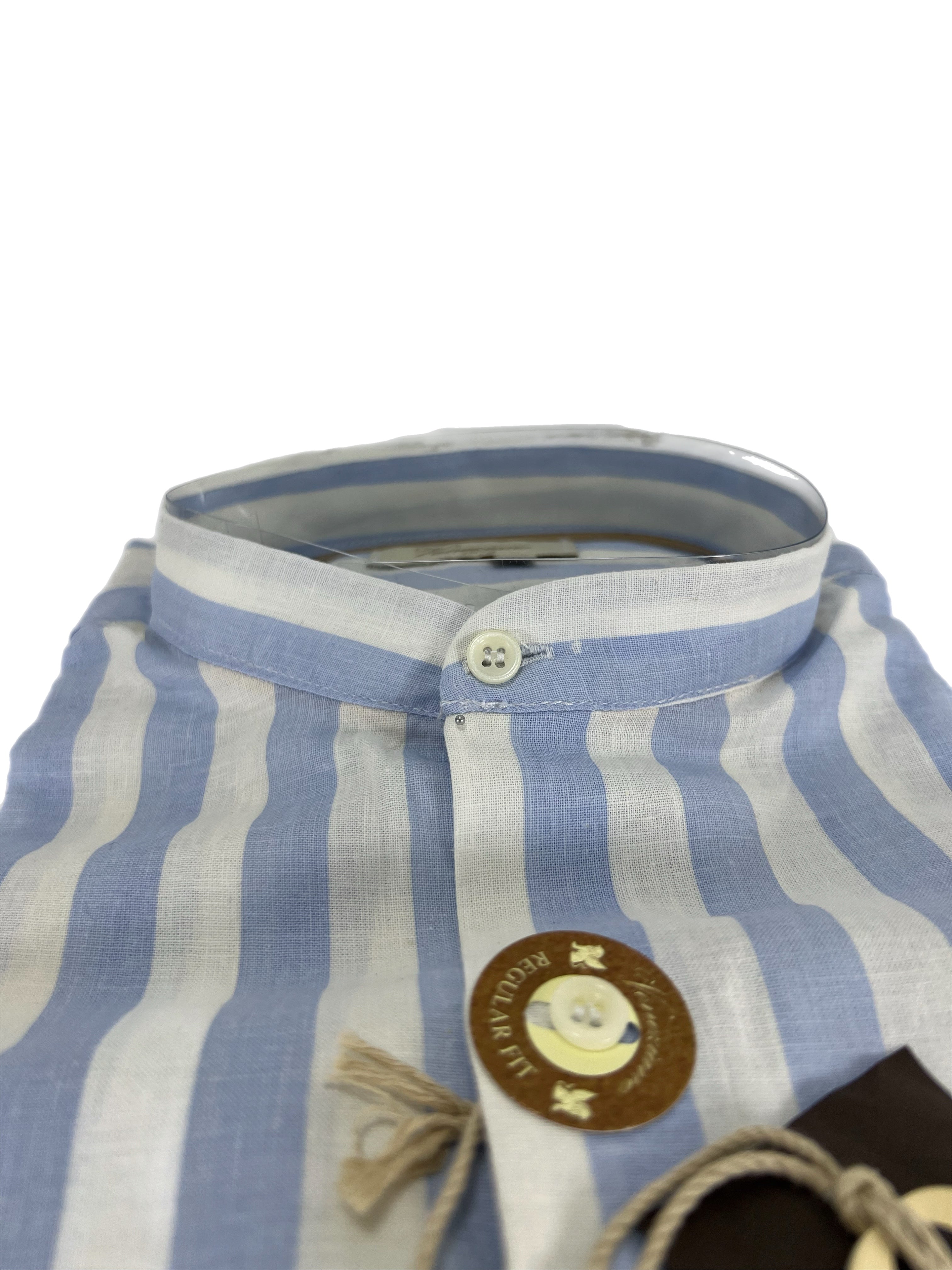 Camicia uomo in puro lino collo coreano medium fit azzurra/bianca Made in Italy