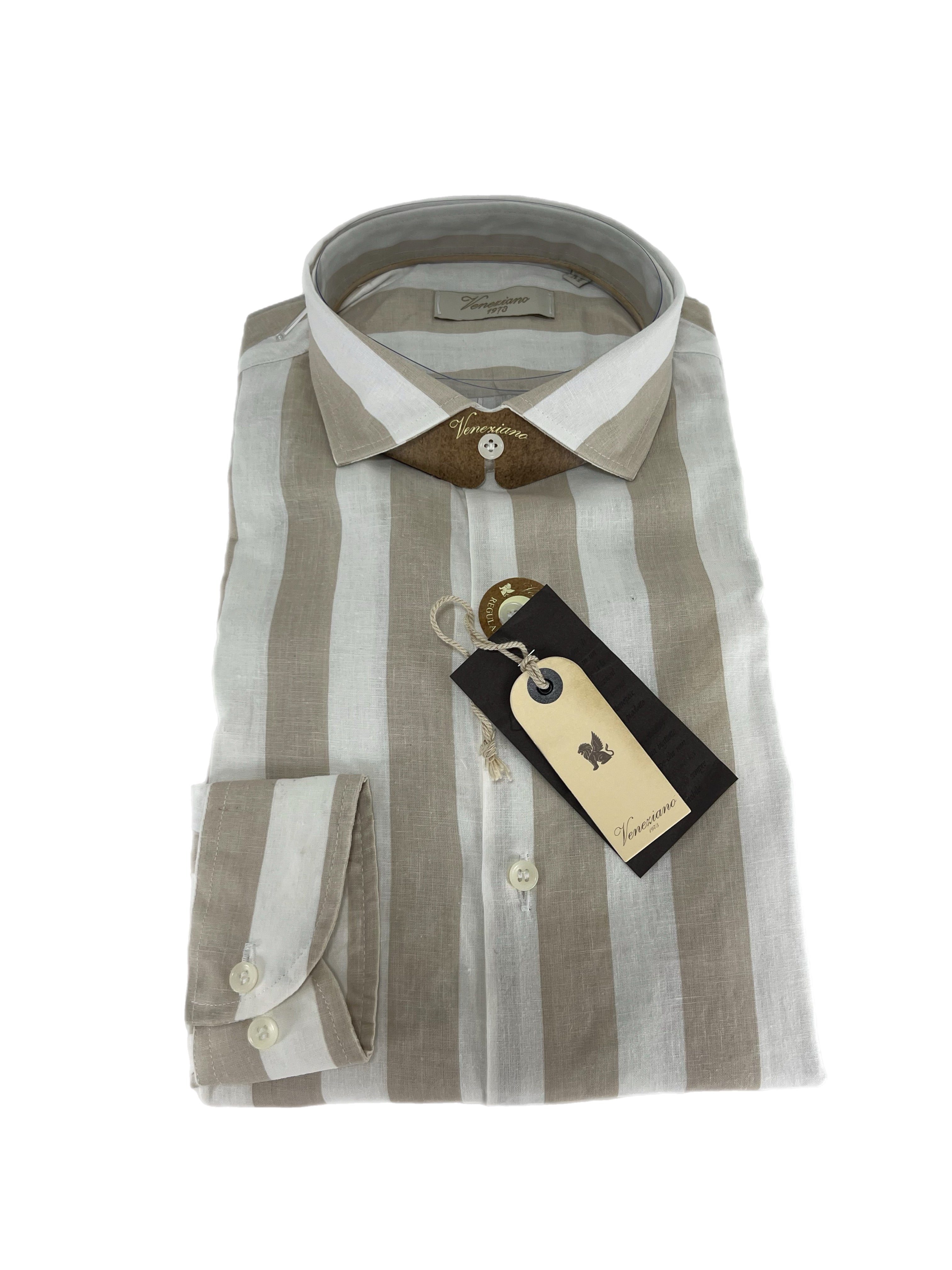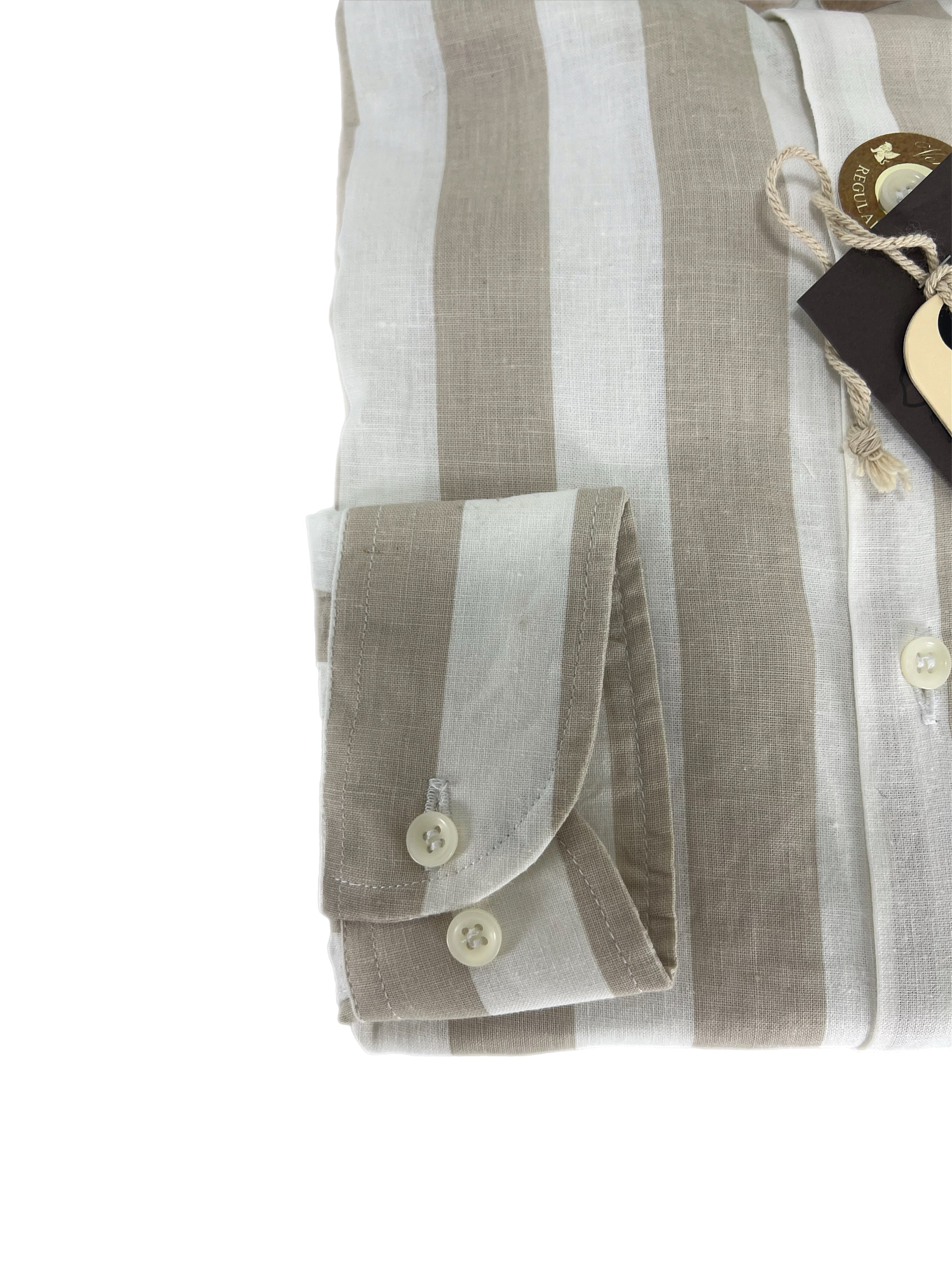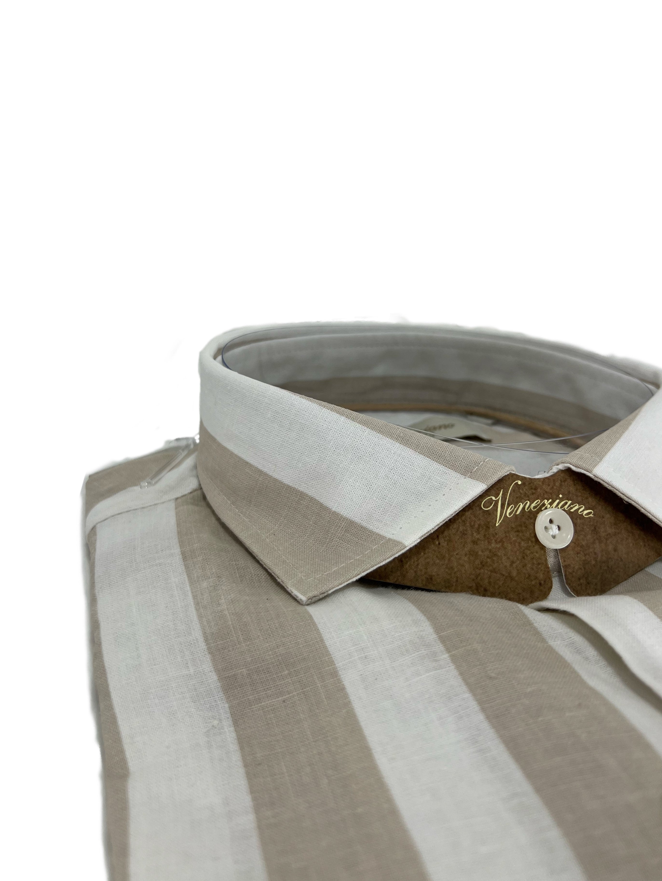 Camicia uomo in puro lino collo francese medium fit beige/bianca Made in Italy