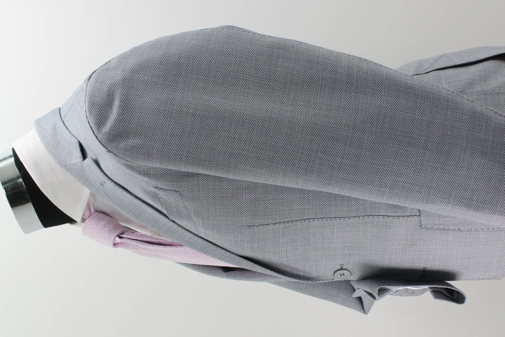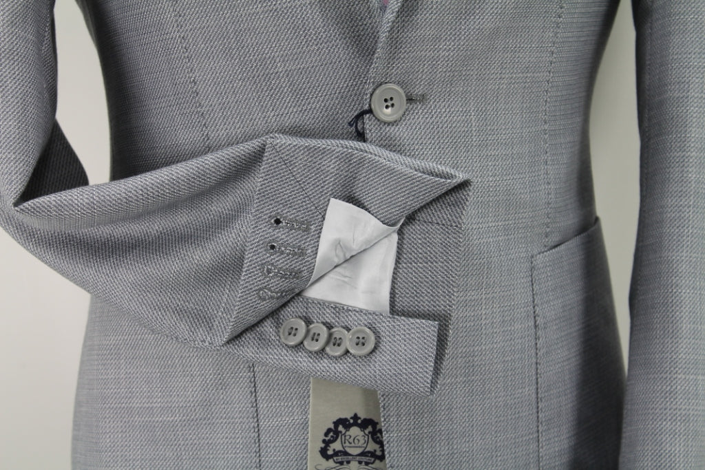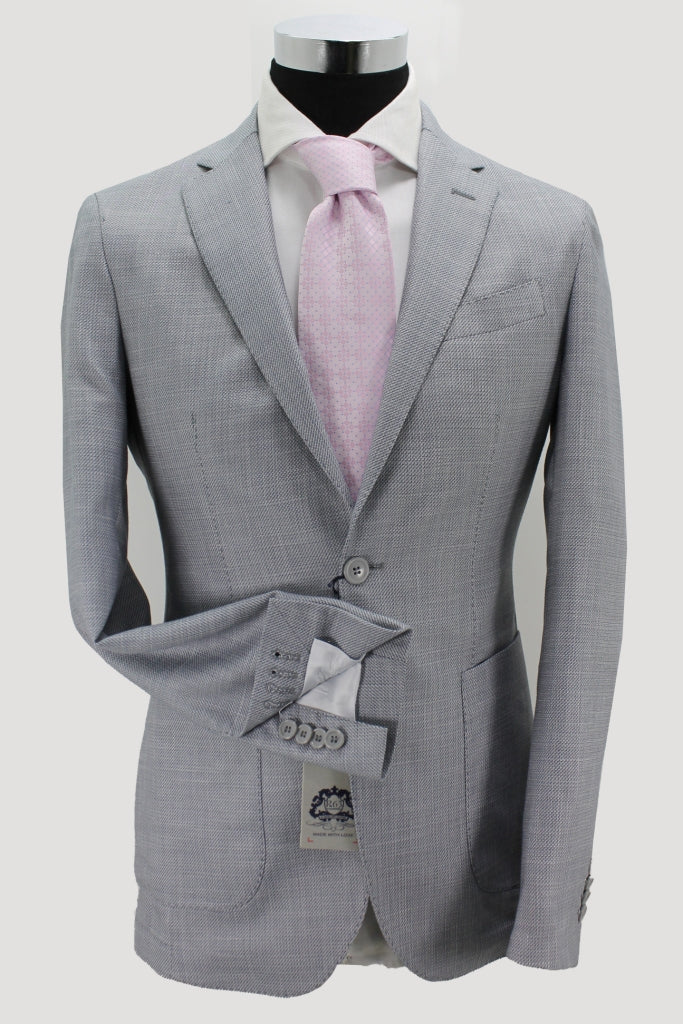 Bellissima giacca blazer sartoriale R63 in lana tasmania art. Amalfi, spalla alla Napoletana, impunturata, 2 spacchi, 2 bottoni, sfoderata, vestibilità slim fit, alta sartoria, colore grigio perla come da immagini.