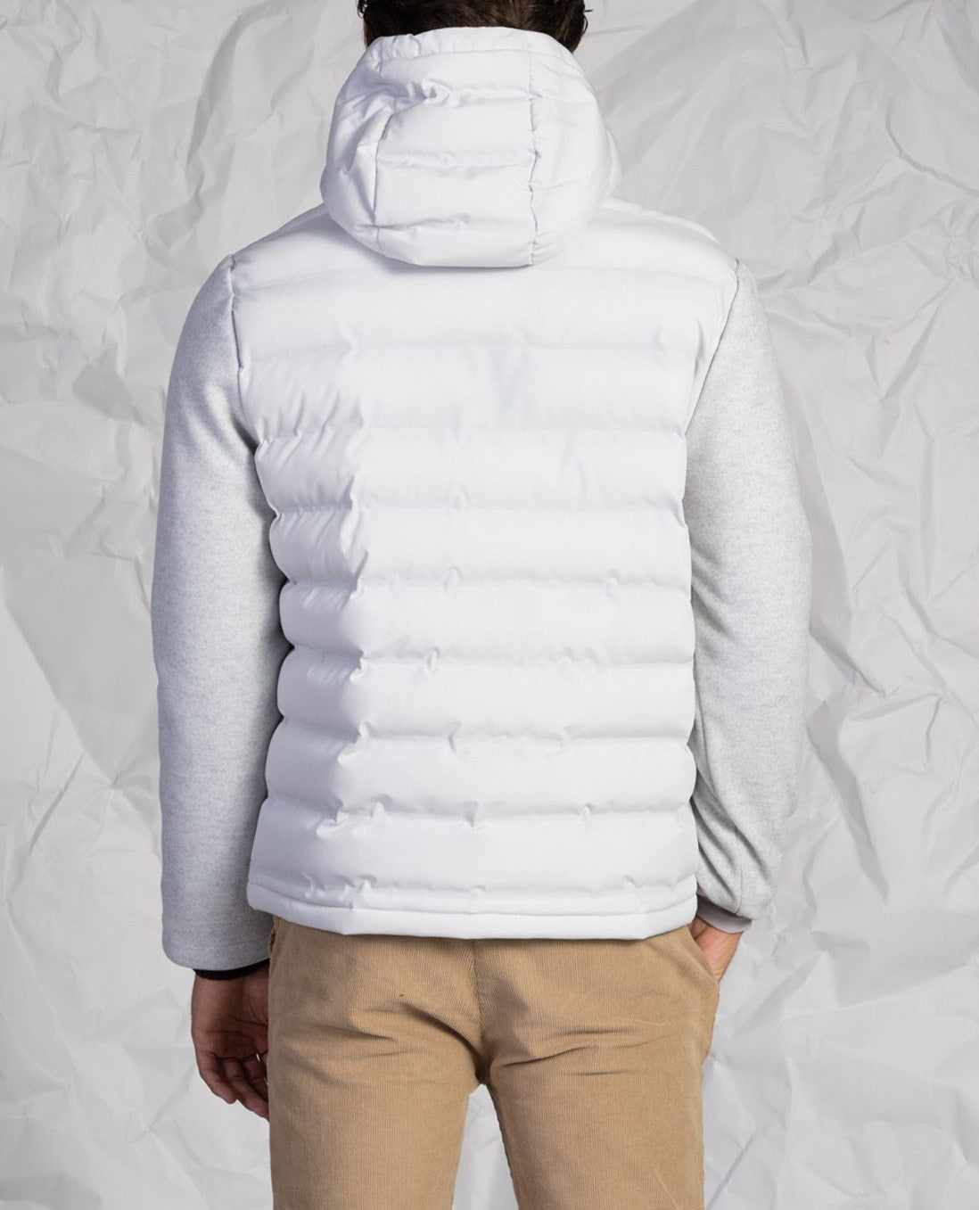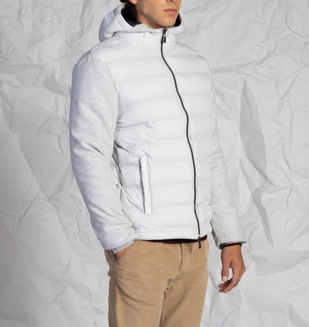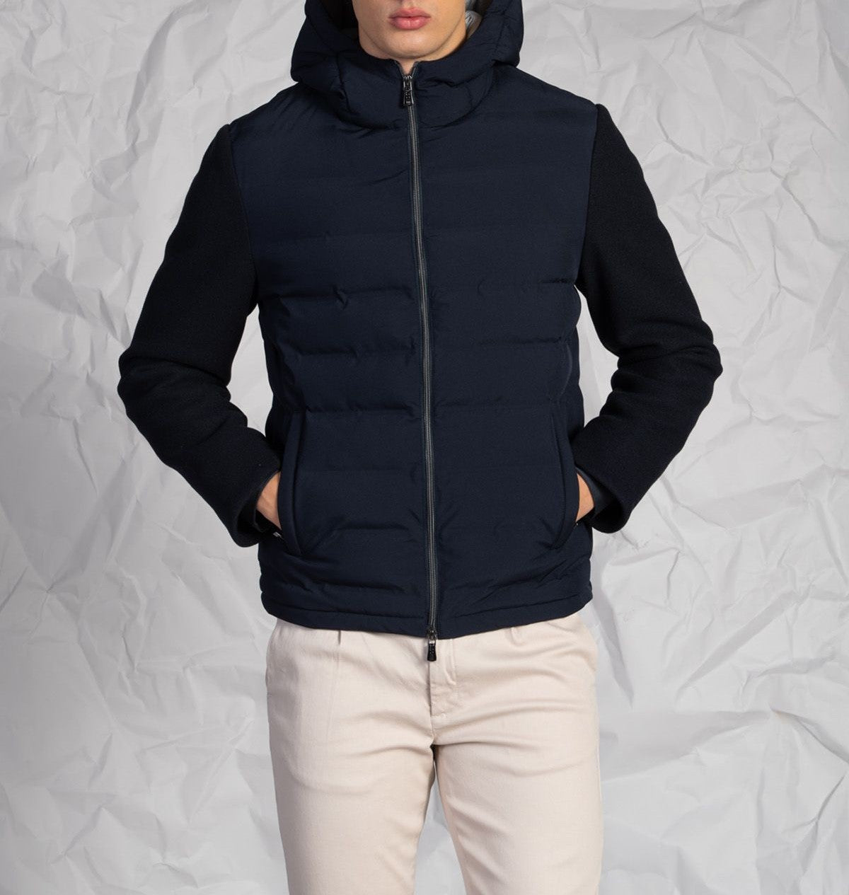Piumino uomo con cappuccio e maniche in lana