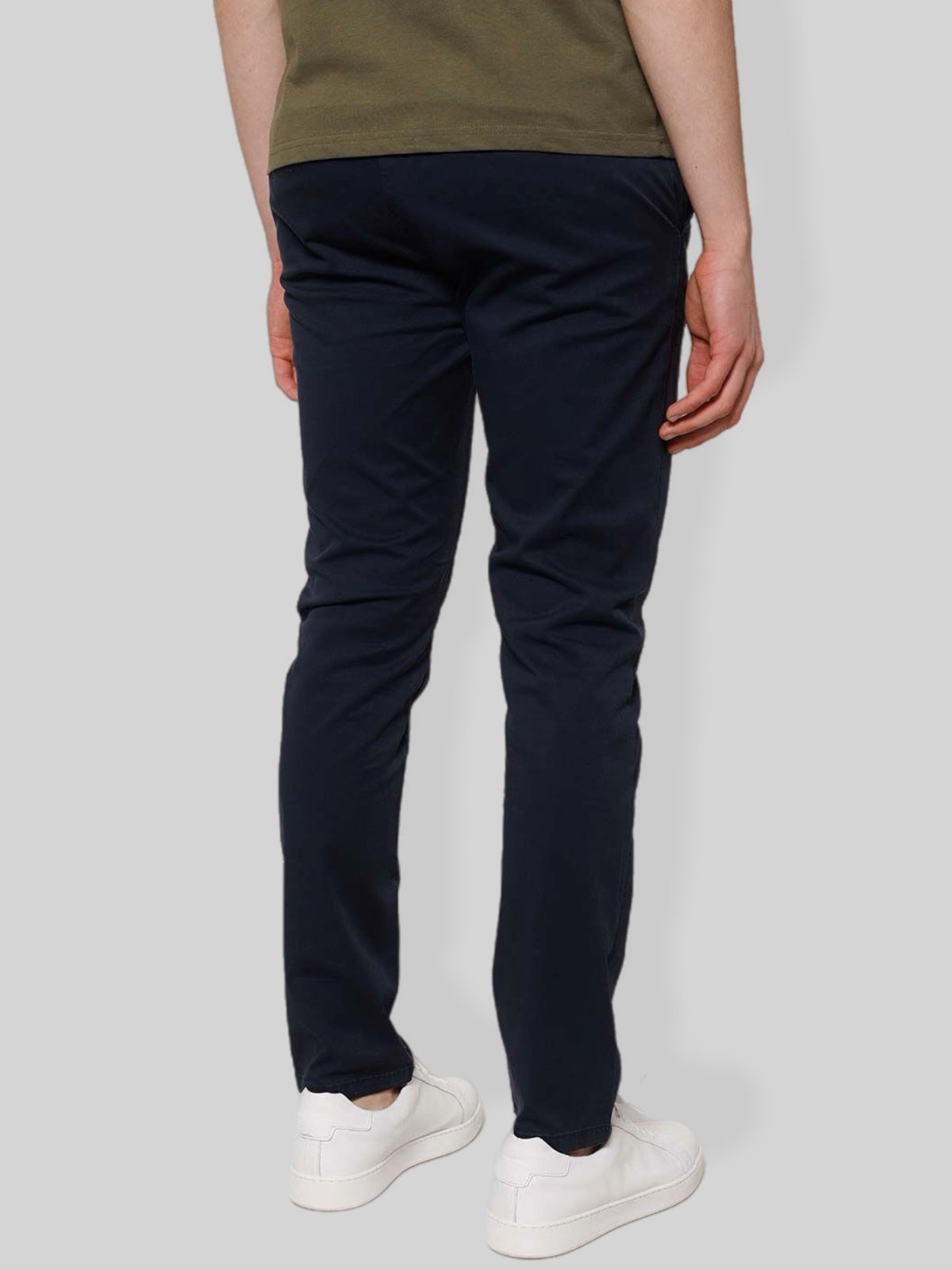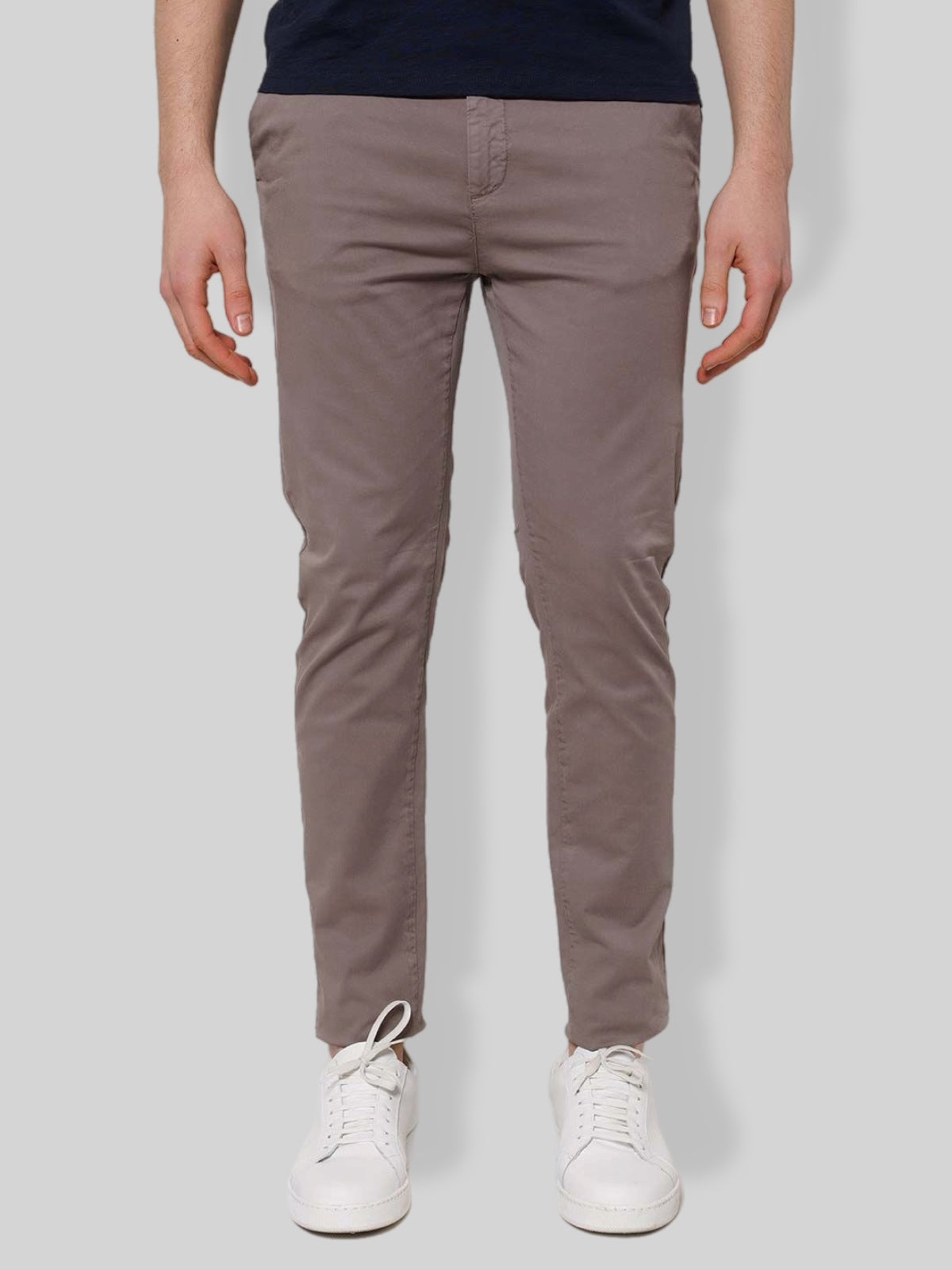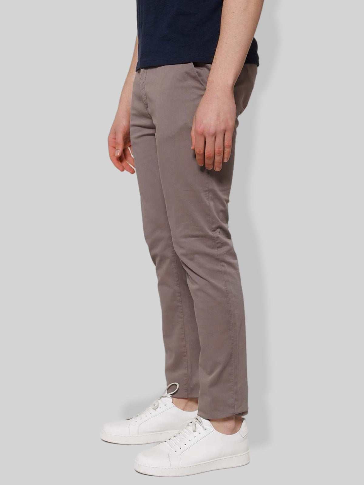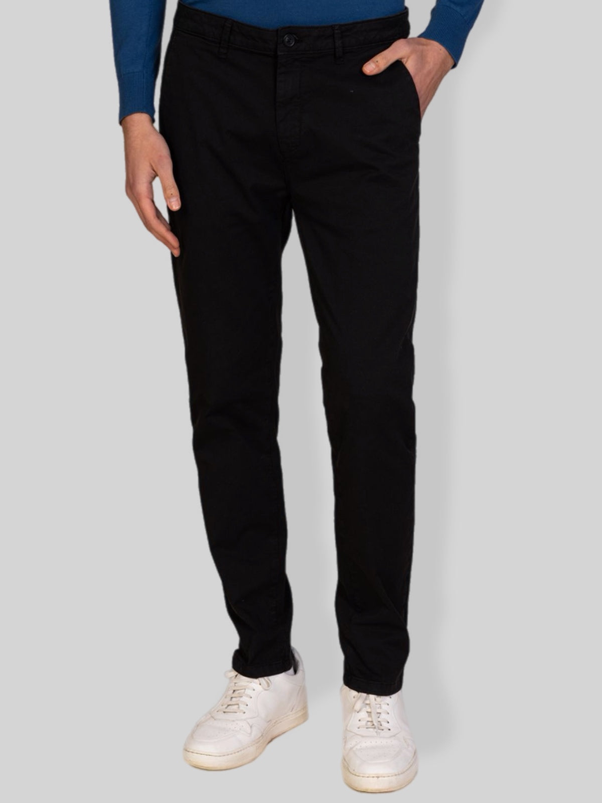 Pantalone chino uomo realizzato in gabardine di cotone, un tessuto resistente, confortevole e ideale per tutte le stagioni. Il modello presenta una vestibilità regolare con linea pulita ed elegante, perfetta sia per outfit casual che per abbinamenti più formali.