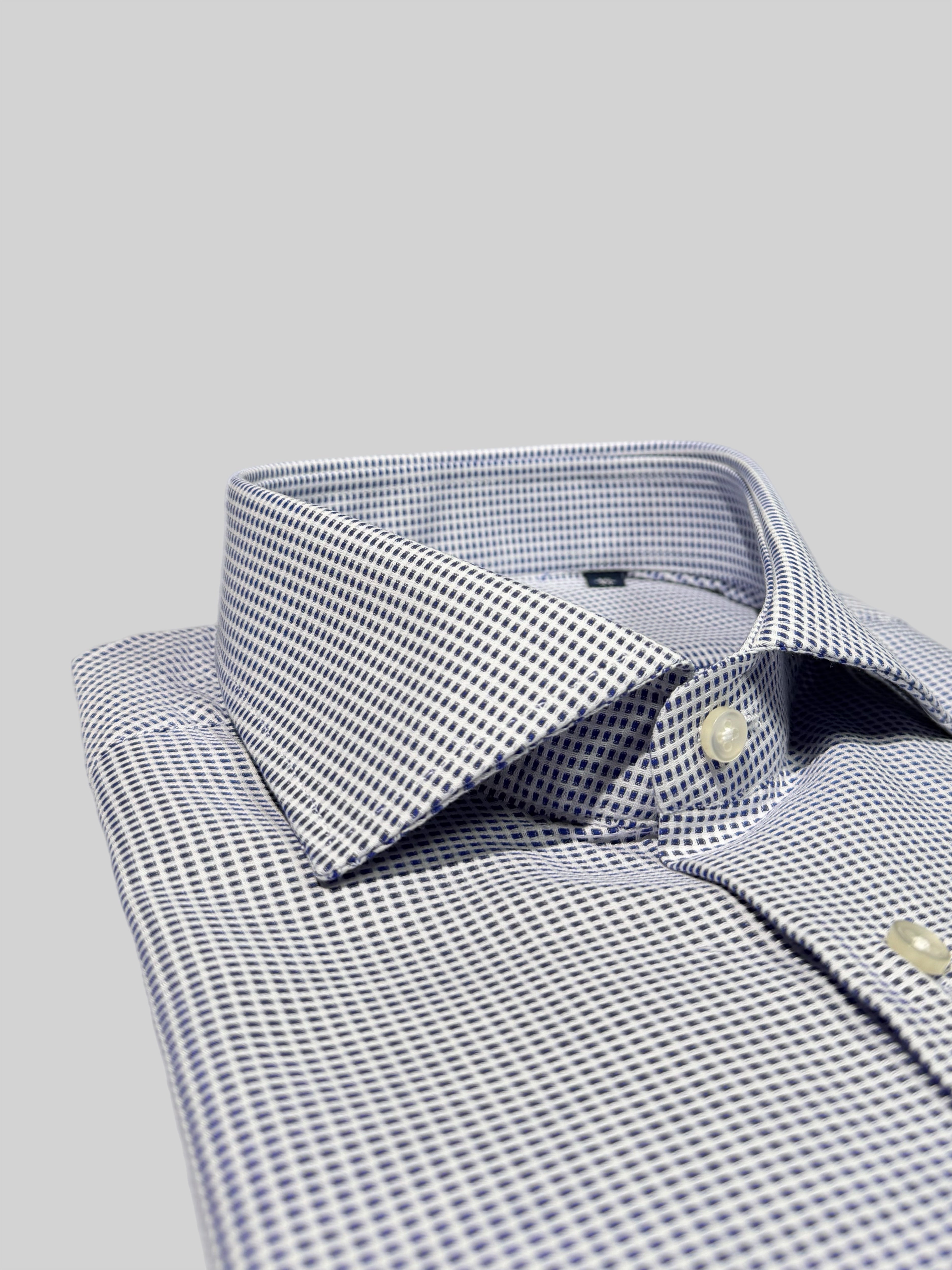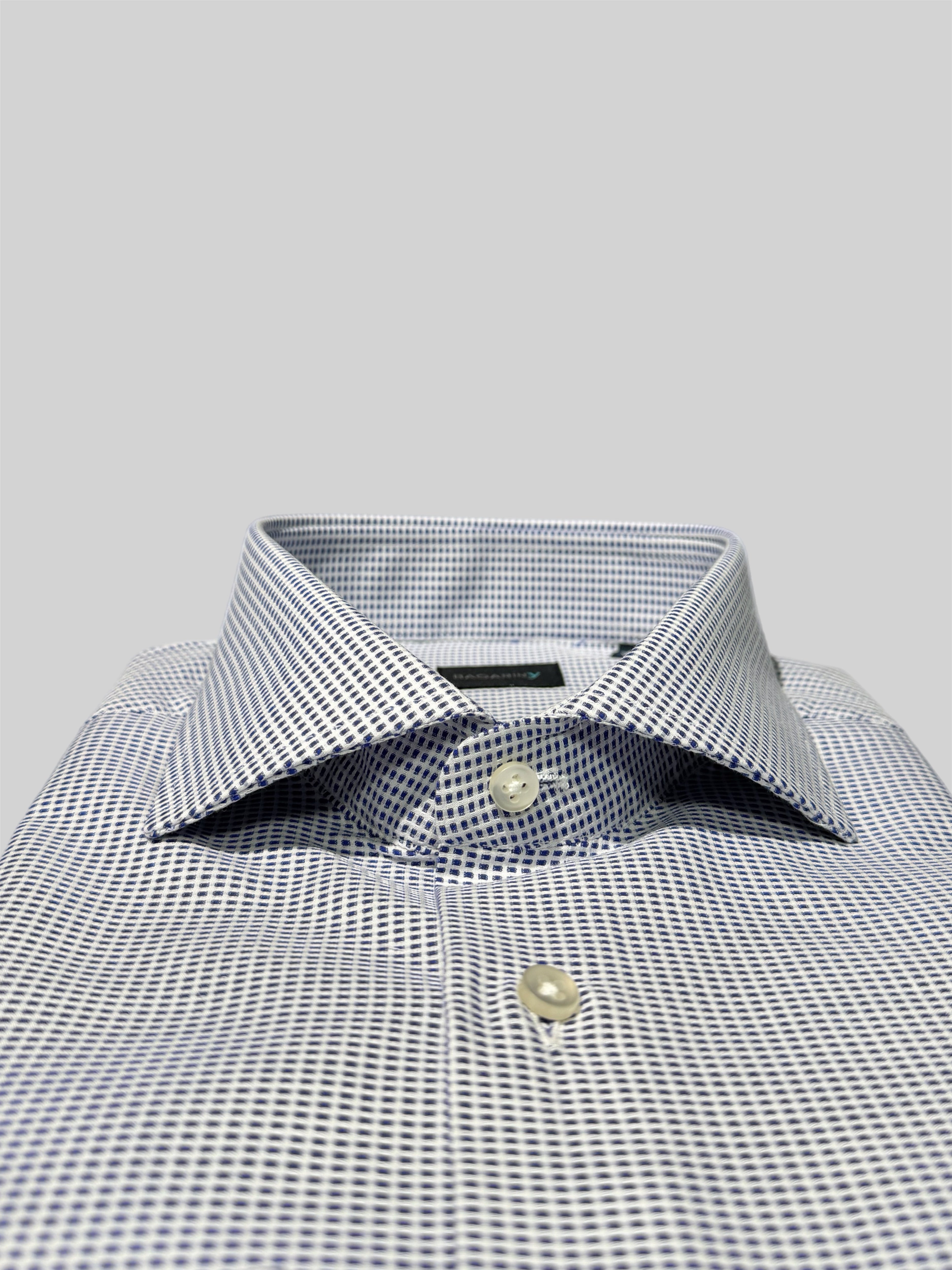 Il capo è caratterizzato da una micro fantasia a quadretto, sobria ed elegante, che conferisce profondità visiva senza risultare eccessiva, rendendo la camicia estremamente versatile e adatta sia a contesti professionali sia a un utilizzo quotidiano curato. Il tessuto garantisce ottima traspirabilità, resistenza e durata nel tempo, mantenendo una piacevole sensazione di comfort anche dopo molte ore di utilizzo.