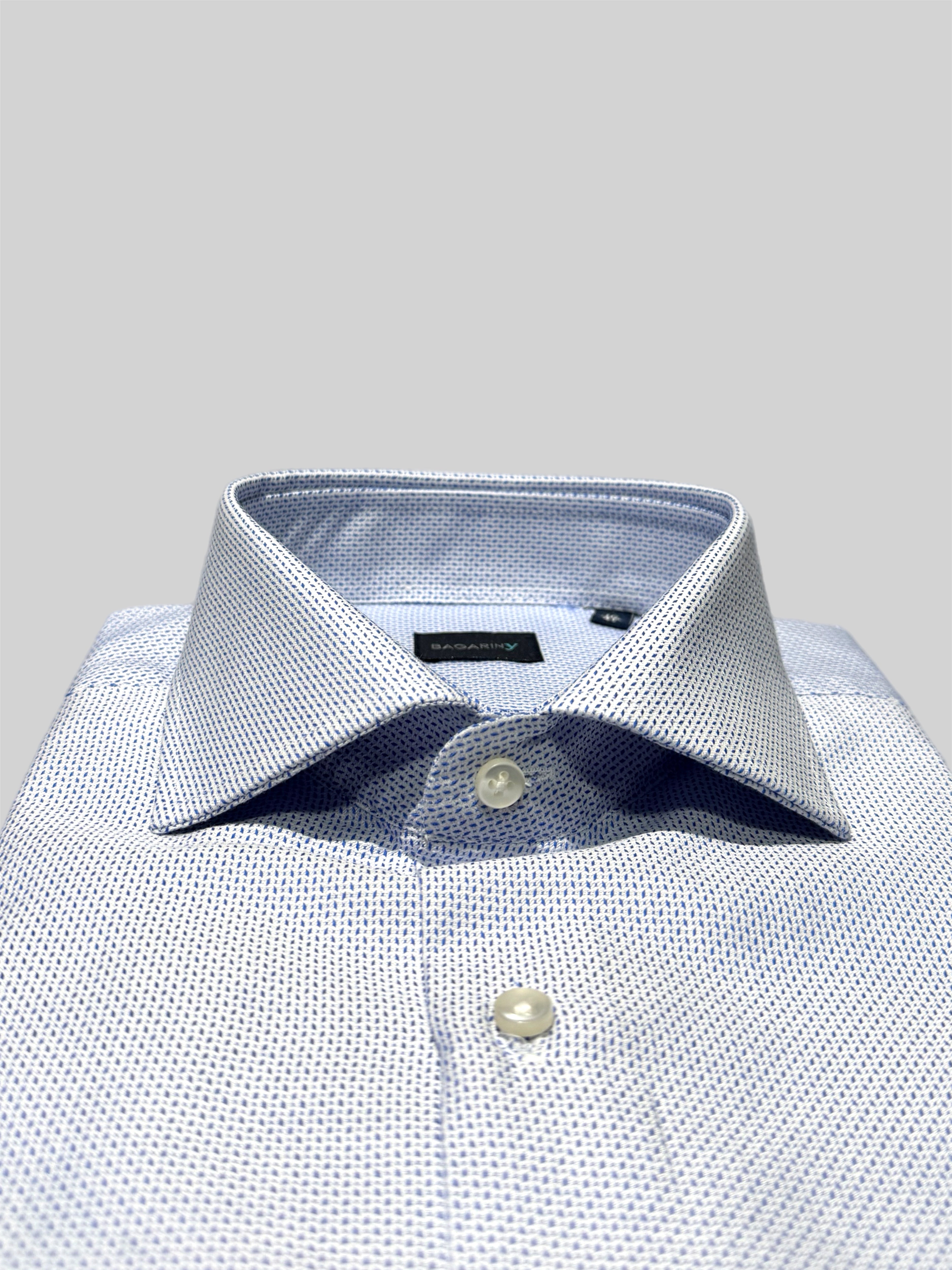 Camicia uomo Bagariny sartoriale in cotone stretch strutturato a micro tessitura blu - slim fit