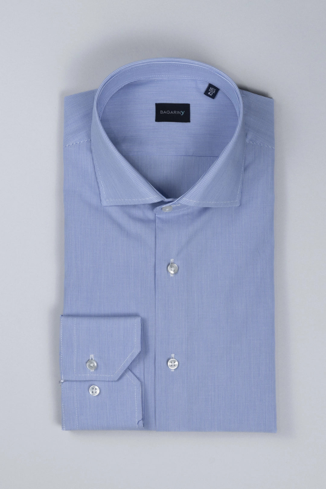 Camicia uomo Bagariny sartoriale in cotone popeline stretch millerighe - slim fit