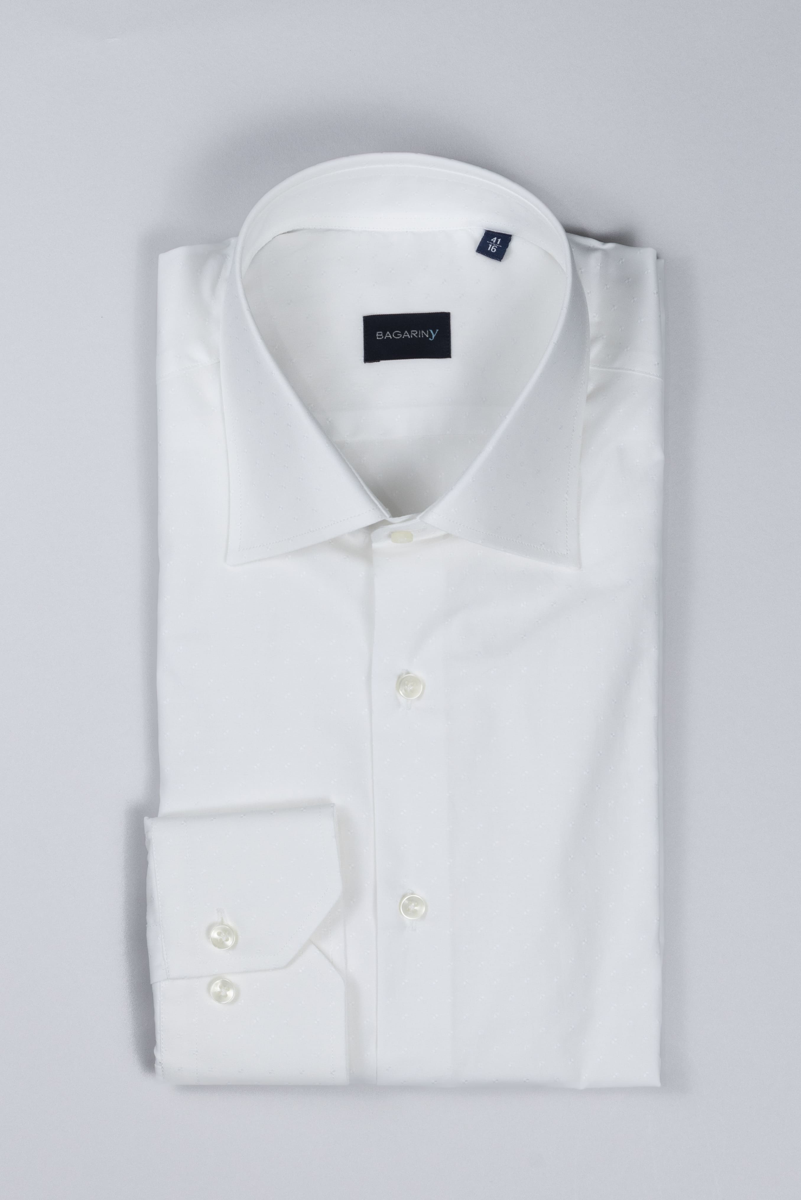 Camicia uomo Bagariny sartoriale in cotone popeline bianco con microfantasie - regular fit