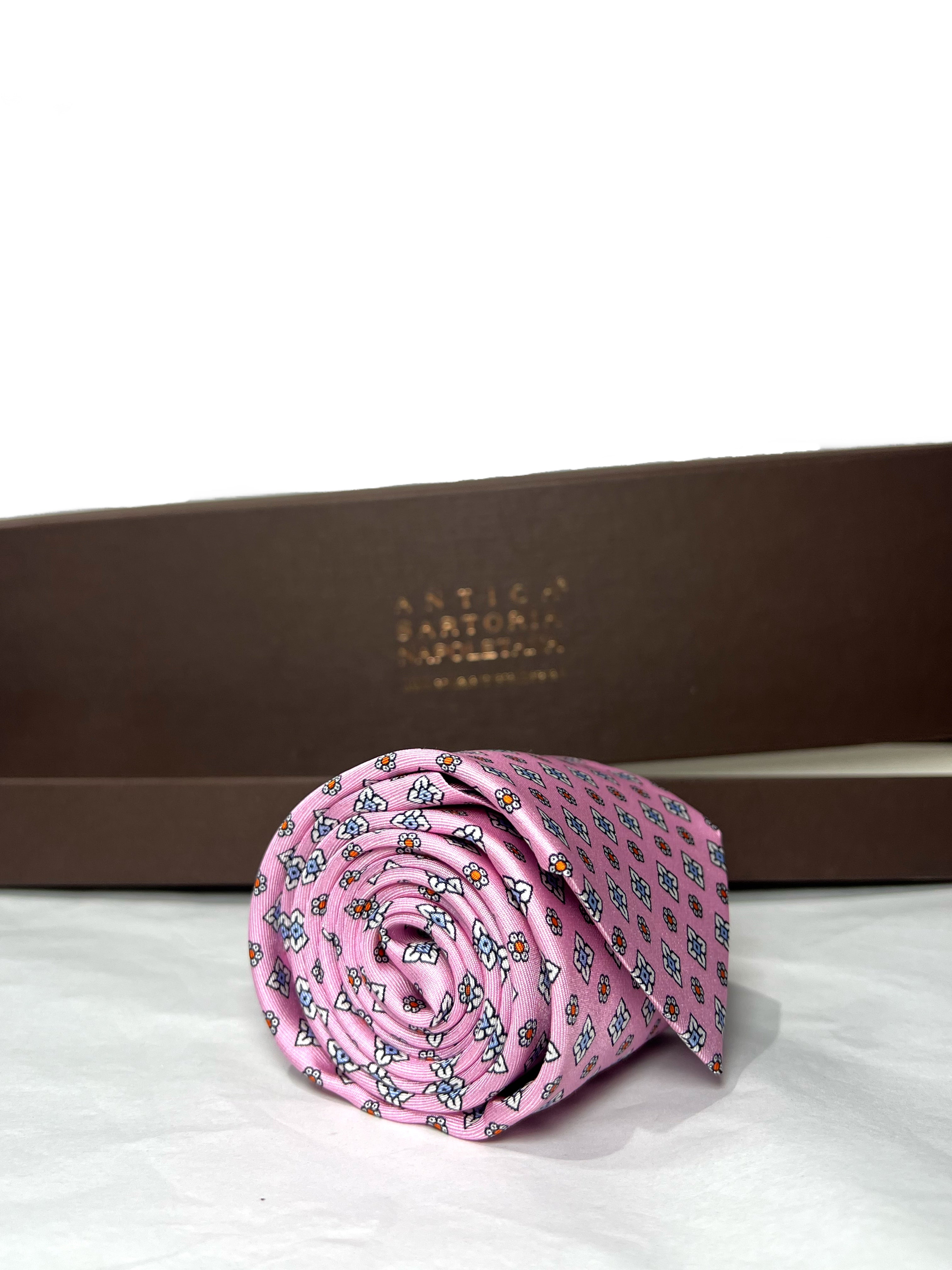 Cravatta in pura seta Antica Sartoria Napoletana cucita a mano fondo rosa
