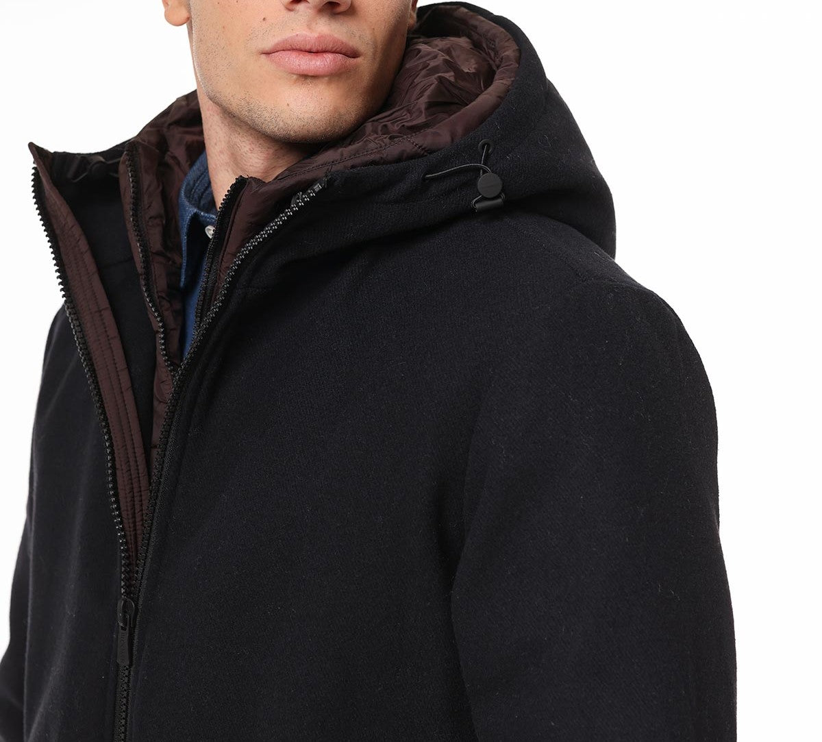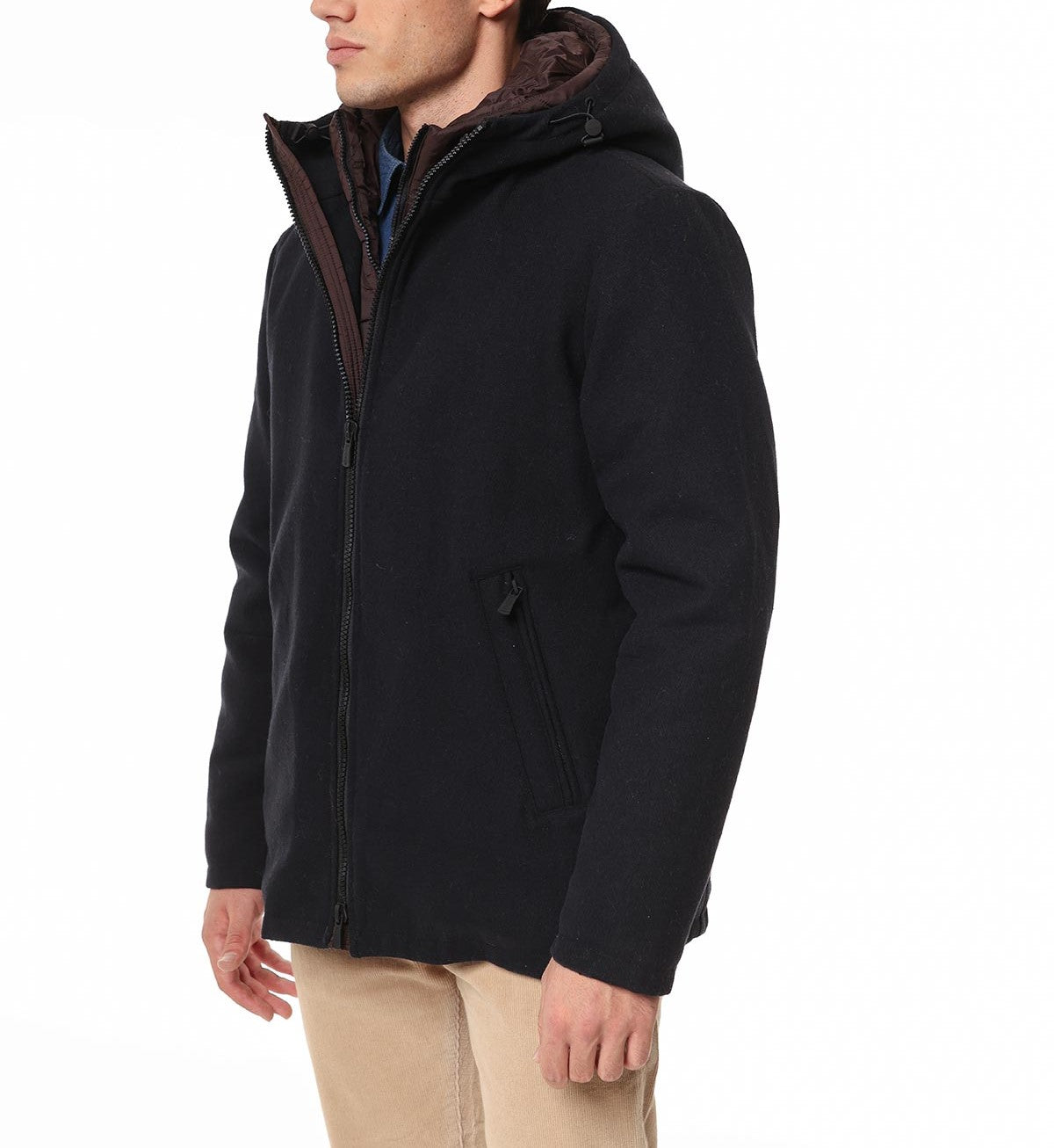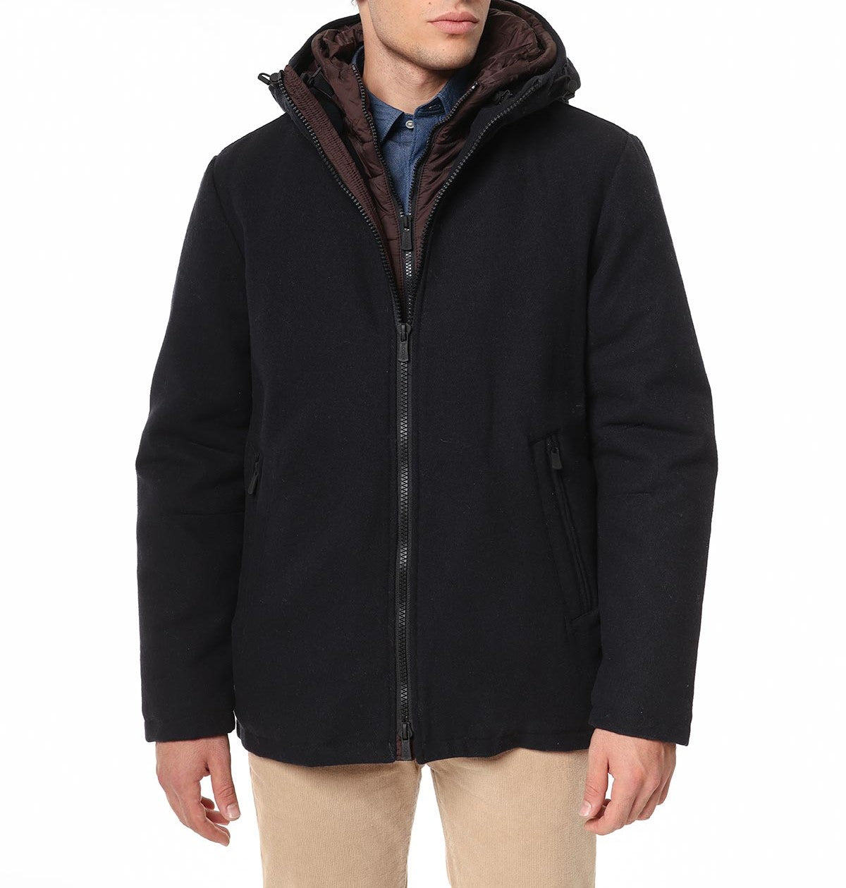 Giaccone casual uomo con cappuccio in panno color blu