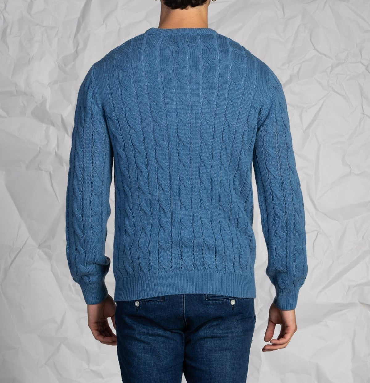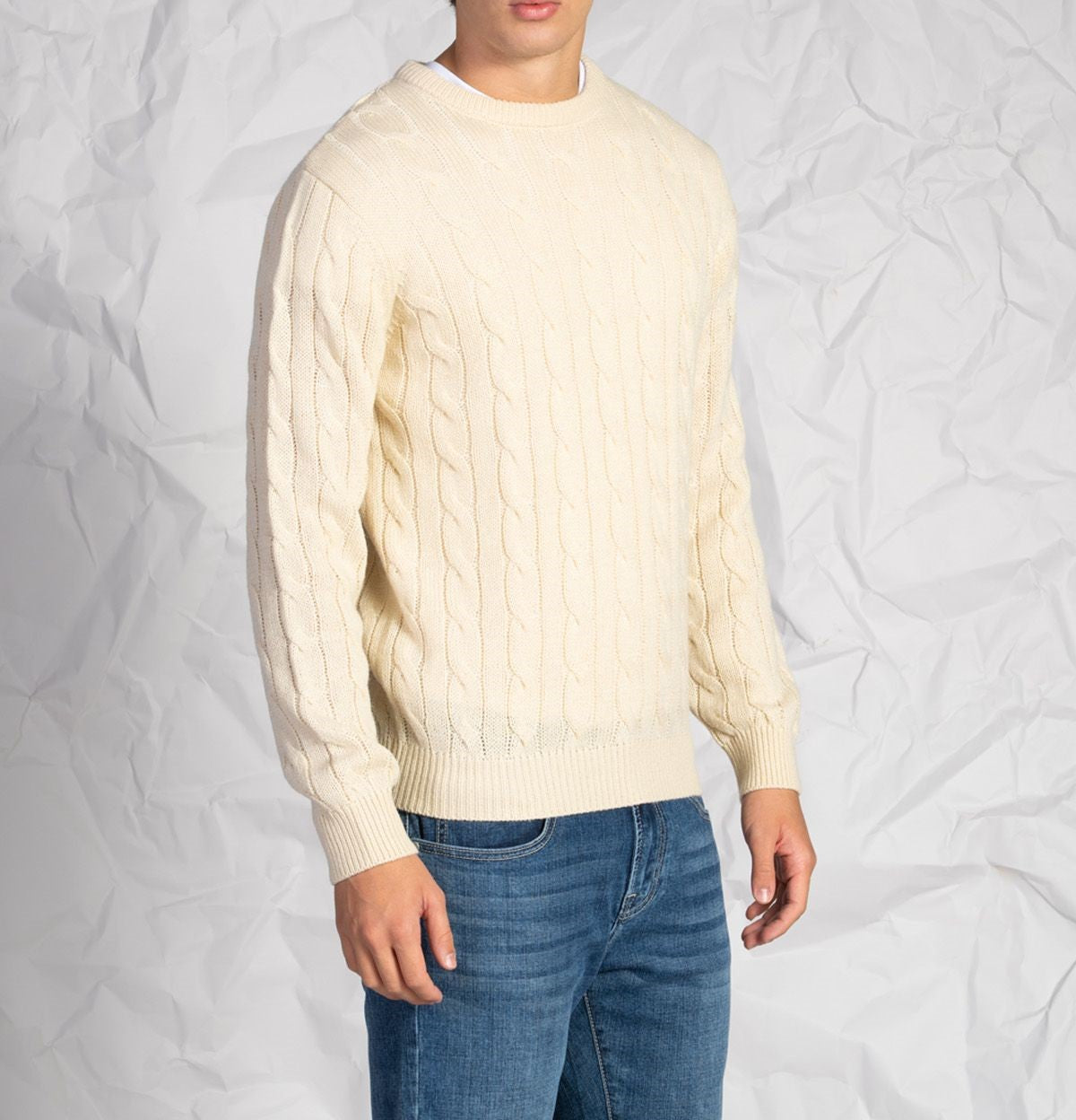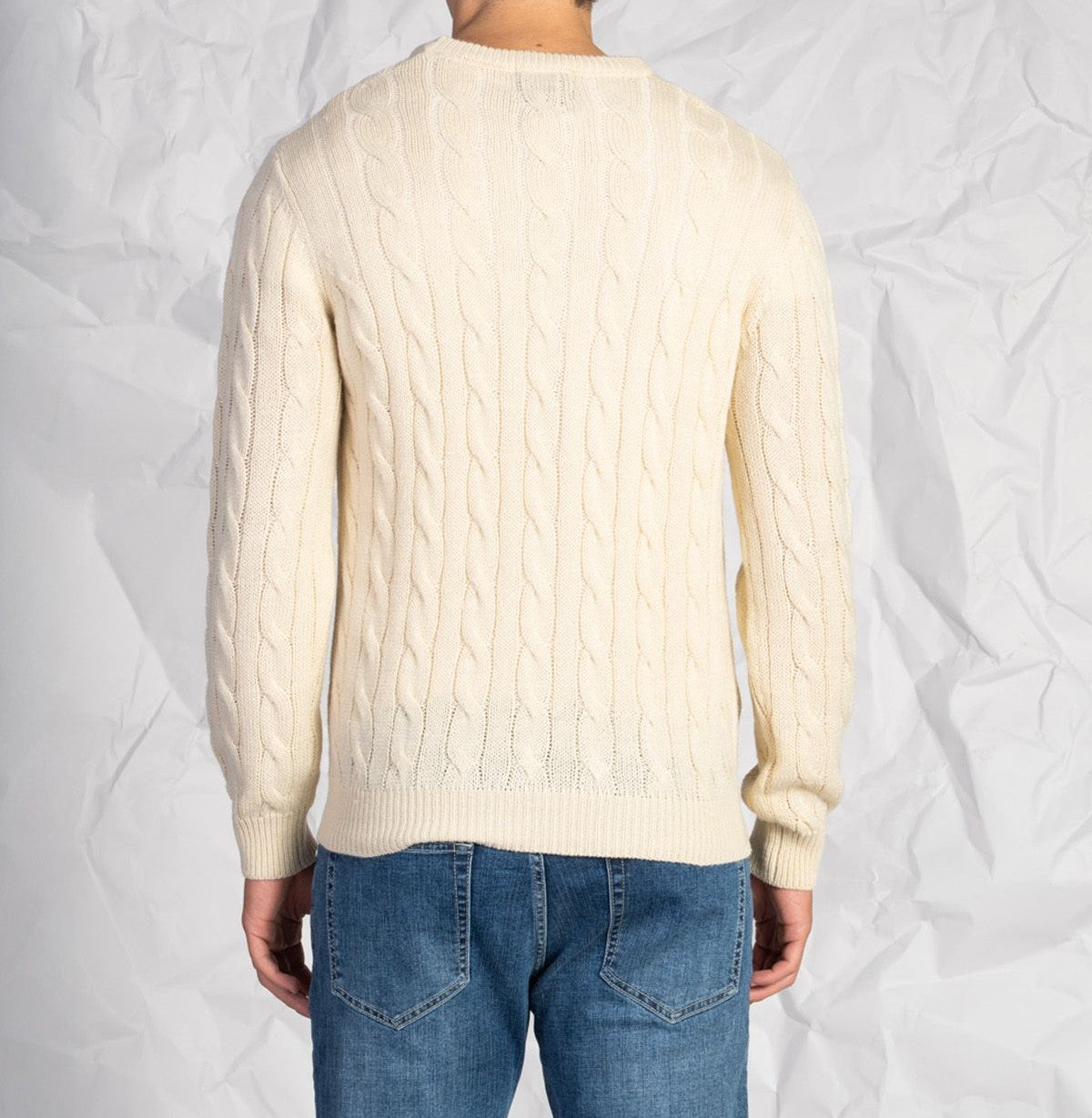 Maglia uomo a girocollo intrecciata in misto lana