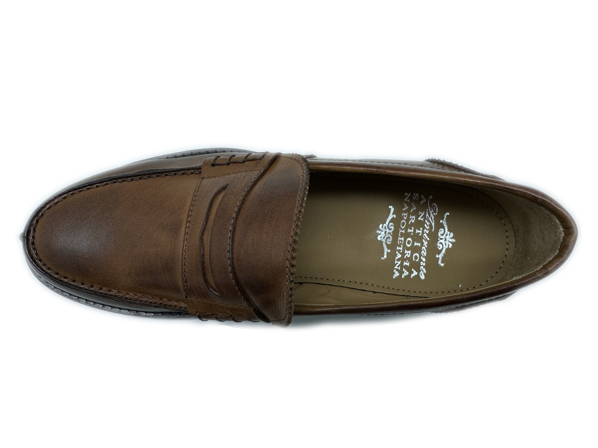 Mocassino classico Antica Sartoria Napoletana in pelle liscia marrone